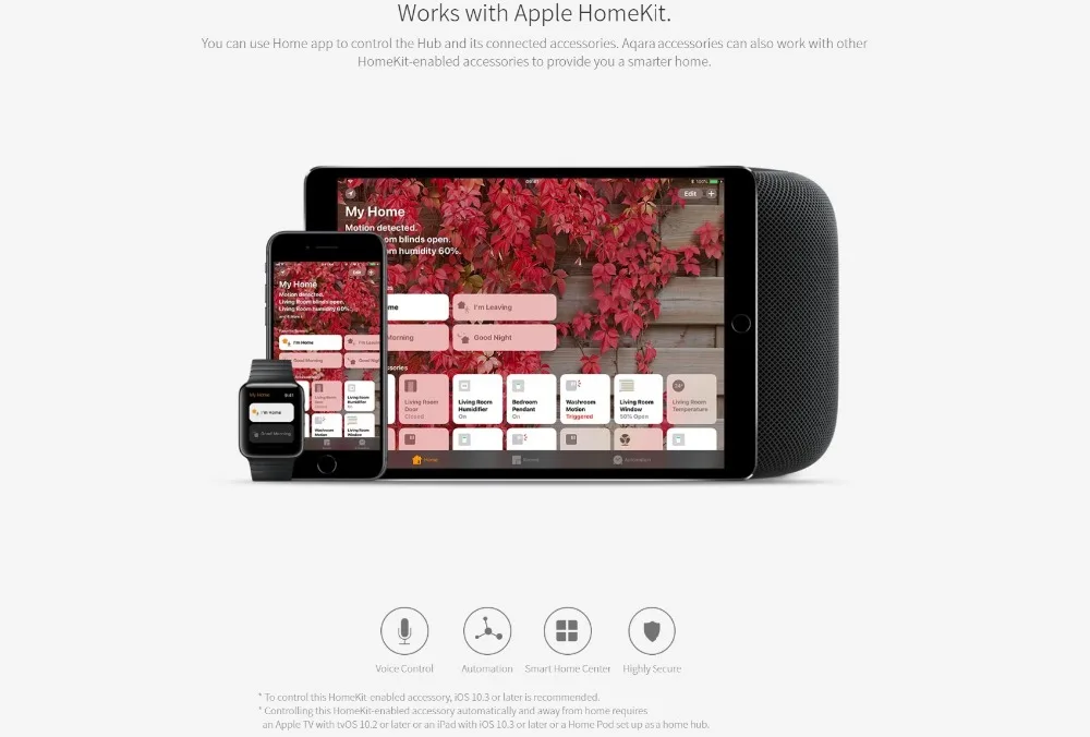 2.This Aqara gateway can work with Mi Home App, Apple Homekit and Aqara Home App.