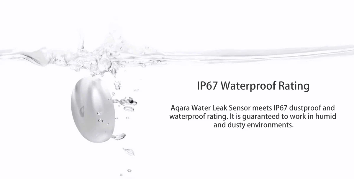 Smart Aqara water sensor can detect in water and remote alarm through APP timely. The durable battery can be used for two years and the battery can be replaced. IP67 waterproof grade, perfect for eave, garden, courtyard, balcony, etc. Simple fashion design, it is not only a Sensor but also an adornment. Technology creates happy life